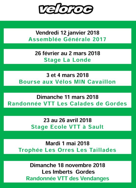 Les Organisations du VELOROC pour 2018