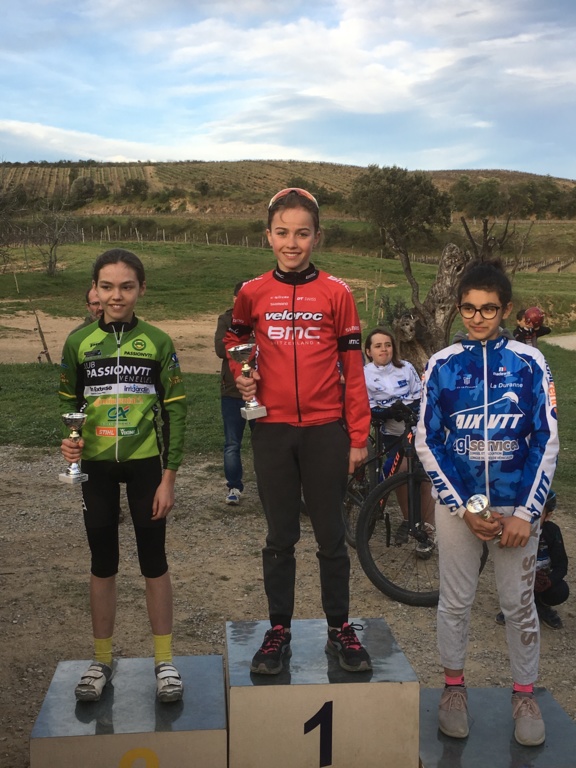 les 3 filles du club présentes à la course montent sur le podium